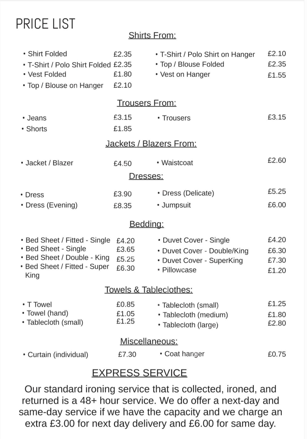 If you find Ironing a chore or need help, please contact me and I will lighten the load!